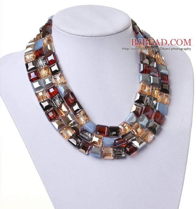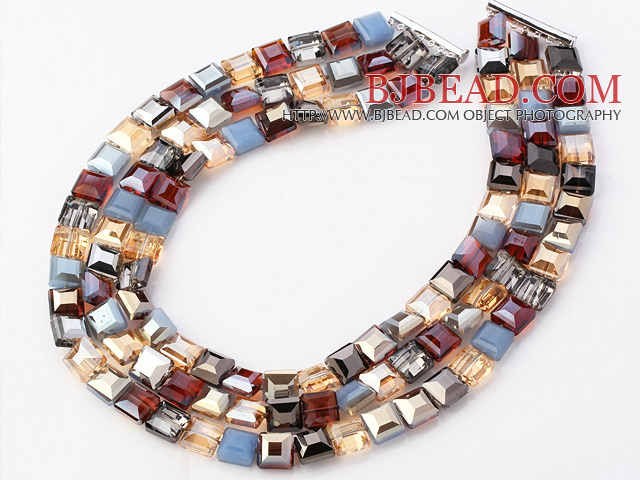 About X3931 : Fashion Three Strands Square Shape Multi Colorful Crystal Beads Necklace With Magnetic Clasp