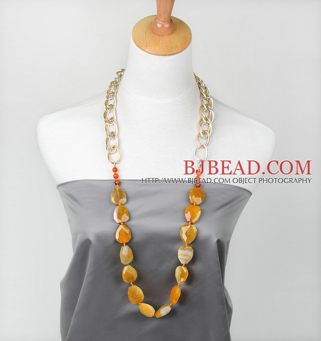 Welcome to buy Yellow Color Burst Pattern Crystallized Agate Knotted Necklace with Golden and Silver Color Metal Chain ( The Chain Can Be Deducted ) from Bjbead.com!!