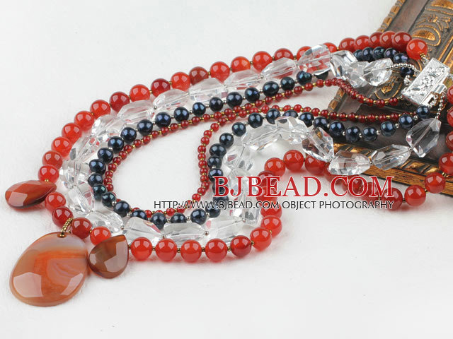 Welcome to buy New Design Multi Layer Pearl Crystal and Agate Party Necklace from Bjbead.com!!