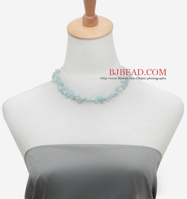 Welcome to buy Light Blue Series Irregular Shape Top Drilled Aquamarine and Clear Crystal Necklace from Bjbead.com!!