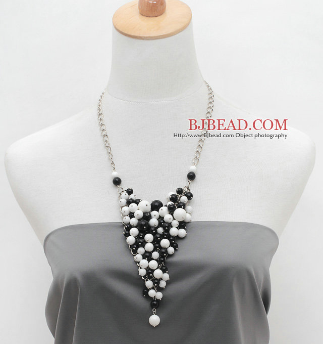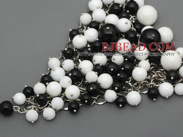 Welcome to buy Fashion Style Black Agate and White Porcelain Stone Metal Wrapped Necklace with Metal Chain from Bjbead.com!!