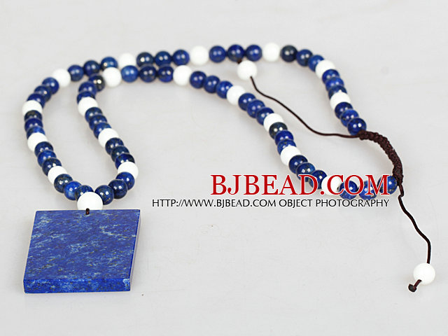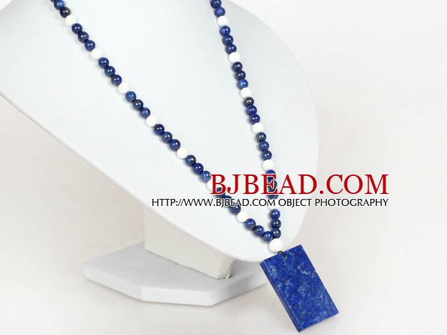 Welcome to buy White Porcelain Stone and Lapis Necklace with Rectangle Shape Lapis Pendant from Bjbead.com!!