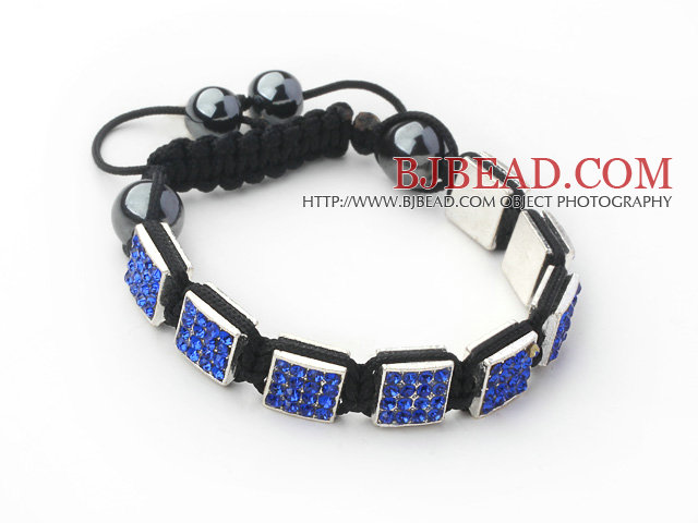 Welcome to buy Square Shape Dark Blue Color Rhinestone Sheet and Hematite and Black Thread Woven Adjustable Drawstring Bracelet from Bjbead.com!!