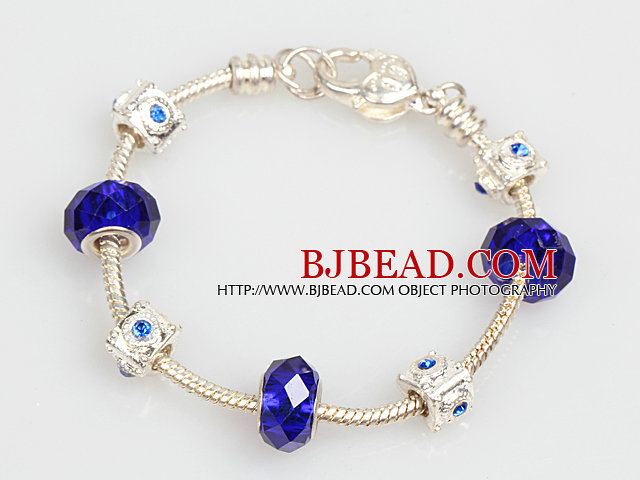 Welcome to buy Fashion Style Dark Blue Colored Glaze Charm Bracelet with Lobster Clasp from Bjbead.com!!