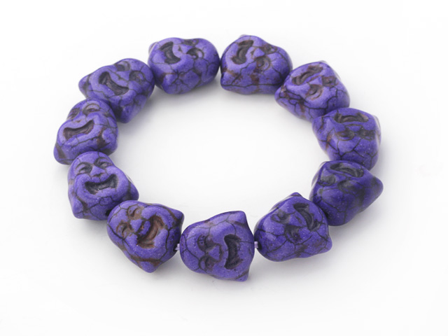 Turquoise Jewelry--Turquoise Bracelet--5 Pieces Dyed Purple Color Turquoise Maitreya Buddha Head Stretch Bangle Bracelets