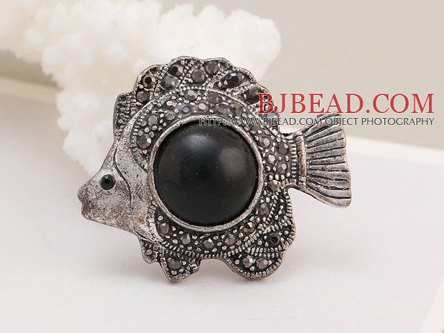 Welcome to buy vintage-like engraved alloy jewelry immitation black gemstone fish shape pendant from Bjbead.com!!