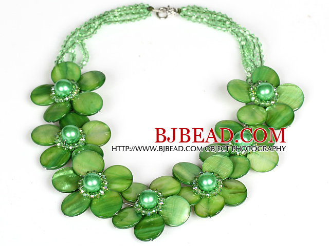 Welcome to buy Green Color Crystal and Shell Flower Party Necklace from Bjbead.com!!